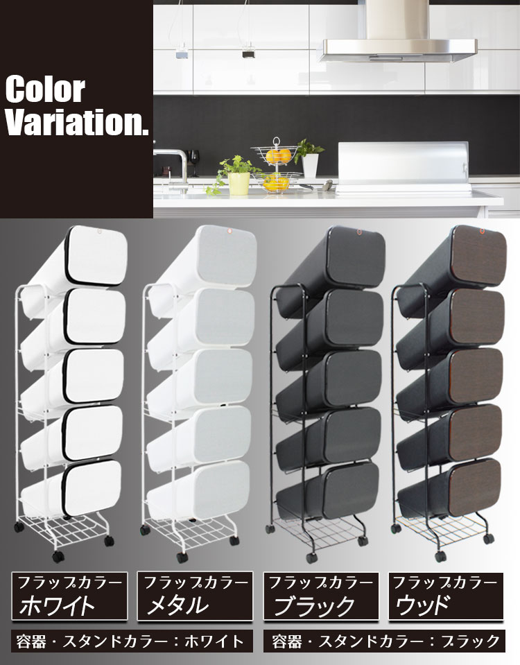 スムーススタンドボックス 5段 セット内容 ・ごみ容器×5 ・ふた×5 ・袋止めリング×5 ・スペーサー×20 ・上サイドフレーム×2 ・下サイドフレーム×2 ・ペールフレーム×5 ・ベースフレーム×1 ・キャスター(ストッパー付き×2・ストッパー無し×2) ・ボルト×20 ・取扱説明書 外形寸法 幅(約)34×奥行(約)50×高さ(約)147cm 重量 (約)9kg 製品耐荷重 1個あたり(約)3kg 全体(約)15kg 材質 ・ごみ容器、ふた、袋止めリング、スペーサー、ダンパーカバー、キャスターソケット:ポリプロピレン ・フラップ:ABS樹脂 ・歯車:ナイロン ・フレーム:銅(粉体焼付塗装) ・ダンパー:ポリカーボネート、ポリアセタール、シリコーンオイル ・ラッチ:ポリアセタール、ナイロン、ステンレス鋼 ・キャスター:ナイロン、鋼 容量 ごみ容器(約)19リットル/個 原産国 ベトナム 使用上のご注意 ●製品の組立完了後、安定を確かめた上で、床面の平らな場所に水平に設置してお使いください。